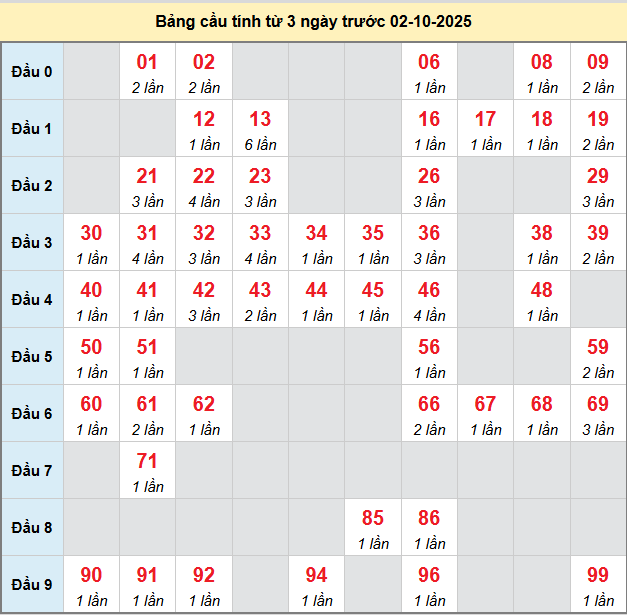 Soi cầu Bình Định ngày 02/10/2025 theo bảng bạch thủ 3 ngày