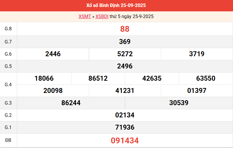 Bảng kết quả Bình Định ngày 25/9/2025 tuần trước