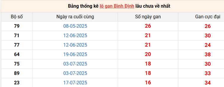 Bảng thống kê lô gan Bình Định lâu về nhất 13/11/2025