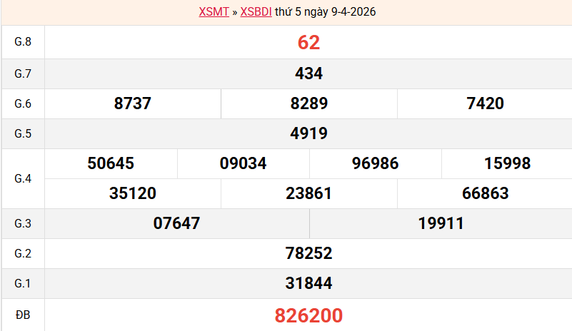Mời các bạn xem lại bảng kết quả kỳ trước với giải đặc biệt, giải tám, lô tô 2 số để có thể đưa ra nhận định dự đoán BDI ngày 16/04/2026 chuẩn xác nhất.