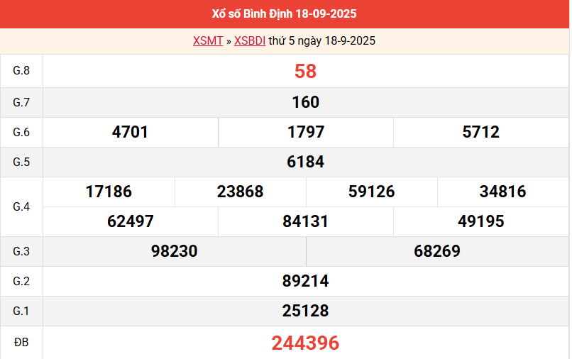 Mời các bạn xem lại bảng kết quả kỳ trước với giải đặc biệt, giải tám, lô tô 2 số để có thể đưa ra nhận định dự đoán BDI ngày 25/9 năm 2025 chuẩn xác nhất.