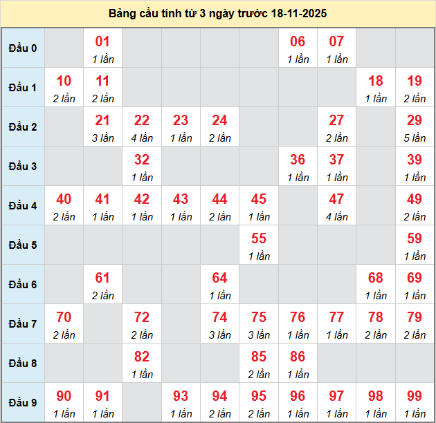 Mời các bạn xem lại bảng kết quả kỳ trước với giải đặc biệt, giải tám, lô tô 2 số vể có thể đưa ra nhận định dự đoán BL ngày 18/11 năm 2025 chuẩn xác nhất.