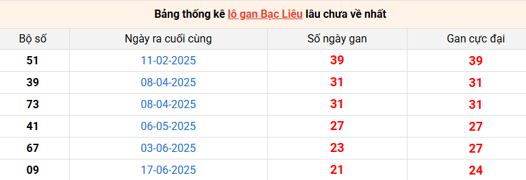 Bảng thống kê lô gan Bạc Liêu lâu về nhất 18/11/2025