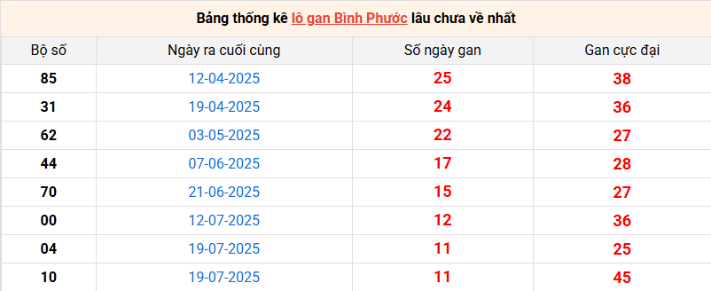 Bảng thống kê lô gan Bình Phước lâu về nhất 11/10/2025