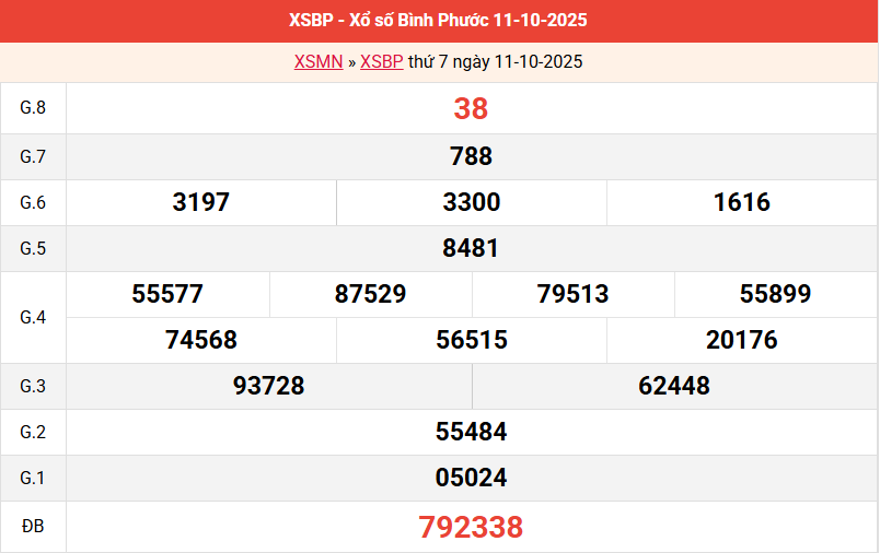 Bảng kết quả Bình Phước ngày 11/10/2025 tuần trước
