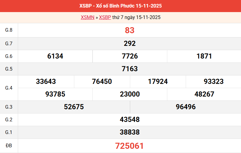 Bảng kết quả Bình Phước ngày 15/11/2025 tuần trước