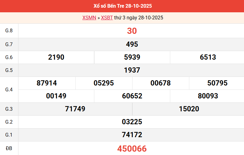 Bảng kết quả Bến Tre ngày 28/10/2025 tuần trước
