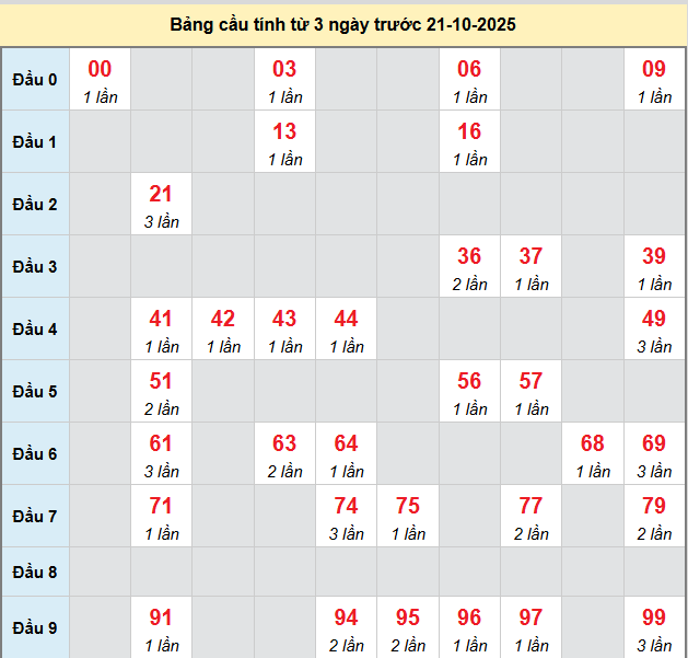 Soi cầu BT 21/10/2025 hôm nay miễn phí được lấy từ các dữ liệu thống kê cầu động chạy nhiều kỳ trước đó, chắc chắn sẽ giúp người chơi soi cầu loto bạch thủ kỳ này có được tỷ lệ trúng cao nhất.