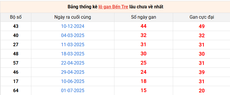 Bảng thống kê lô gan Bến Tre lâu về nhất 21/10/2025