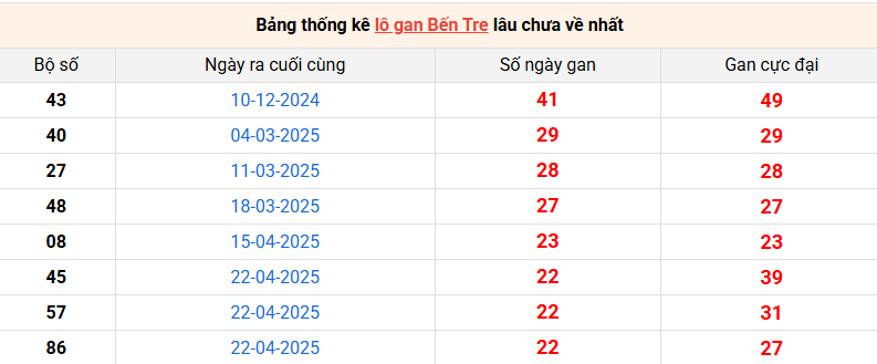 Bảng thống kê lô gan Bến Tre lâu về nhất 30/9/2025
