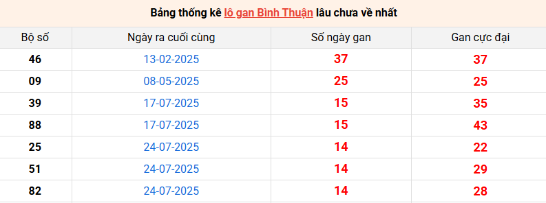 Bảng thống kê lô gan Bình Thuận lâu về nhất 06/11/2025
