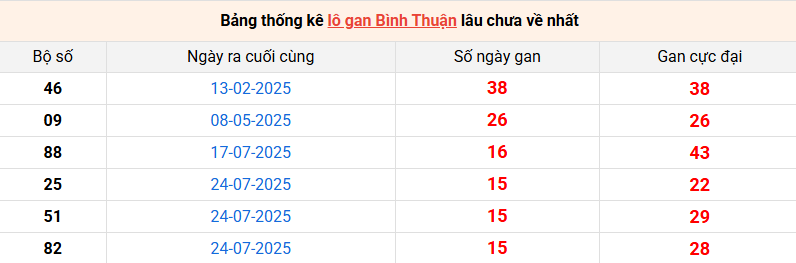 Bảng thống kê lô gan Bình Thuận lâu về nhất 13/11/2025