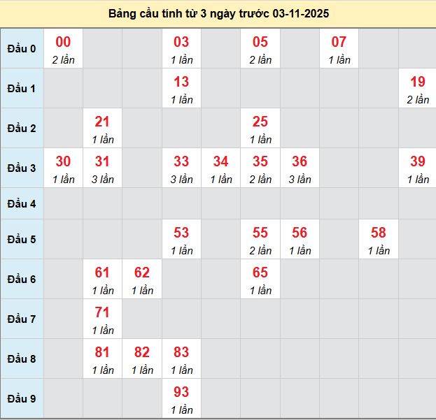 Soi cầu CM 03/11/2025 hôm nay miễn phí được lấy từ các dữ liệu thống kê cầu động chạy nhiều kỳ trước đó, chắc chắn sẽ giúp người chơi soi cầu loto bạch thủ kỳ này có được tỷ lệ trúng cao nhất.