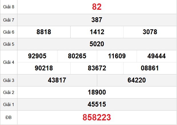 Mời các bạn xem lại bảng kết quả kỳ trước với giải đặc biệt, giải tám, lô tô 2 số để có thể đưa ra nhận định dự đoán CM ngày 20/10 năm 2025 chuẩn xác nhất.