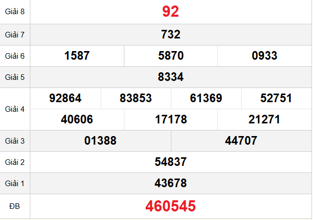 Mời các bạn xem lại bảng kết quả kỳ trước với giải đặc biệt, giải tám, lô tô 2 số để có thể đưa ra nhận định dự đoán CM ngày 27/10 năm 2025 chuẩn xác nhất.