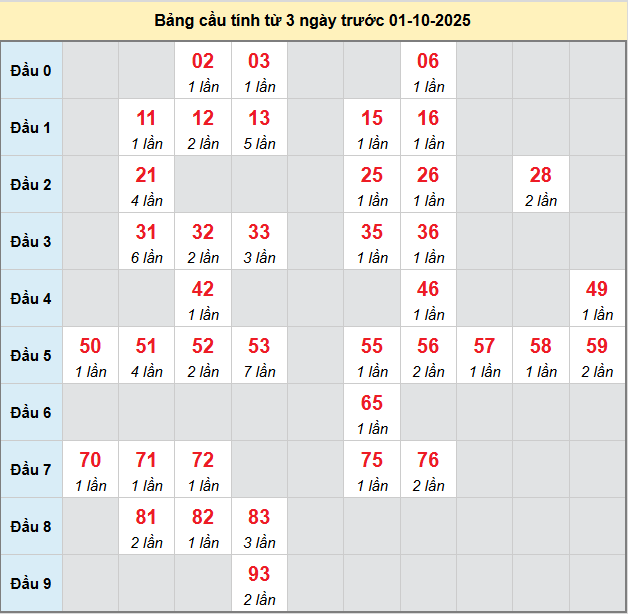 Soi cầu CT 01/10/2025 hôm nay miễn phí được lấy từ các dữ liệu thống kê cầu động chạy nhiều kỳ trước đó, chắc chắn sẽ giúp người chơi soi cầu loto bạch thủ kỳ này có được tỷ lệ trúng cao nhất.