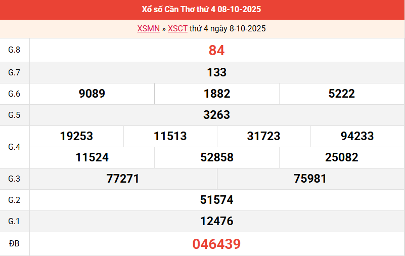 Bảng kết quả Cần Thơ ngày 08/10/2025 tuần trước
