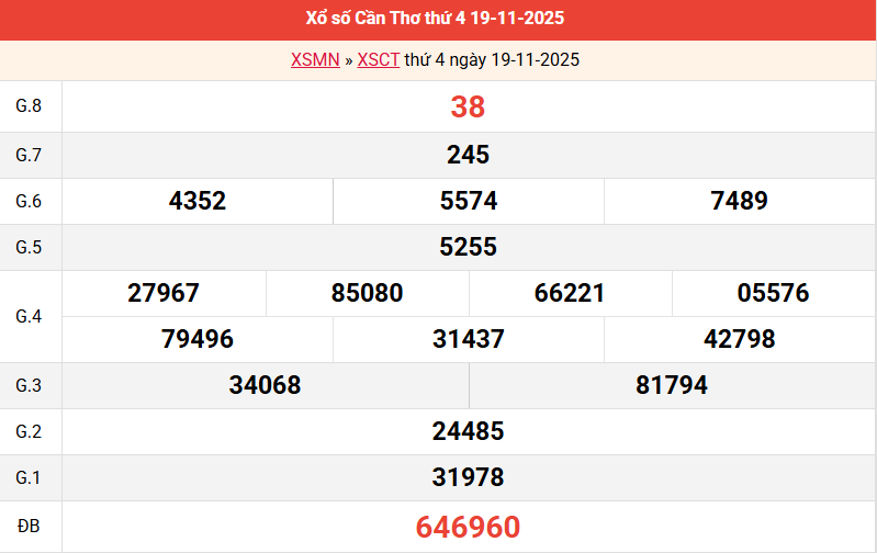 Bảng kết quả Cần Thơ ngày 19/11/2025 tuần trước