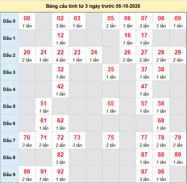 Soi cầu DL 05/10/2025 hôm nay miễn phí được lấy từ các dữ liệu thống kê cầu động chạy nhiều kỳ trước đó, chắc chắn sẽ giúp người chơi soi cầu loto bạch thủ kỳ này có được tỷ lệ trúng cao nhất.