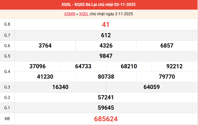 Bảng kết quả Đà Lạt ngày 02/11/2025 tuần trước