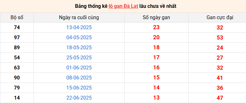 Bảng thống kê lô gan Đà Lạt lâu về nhất