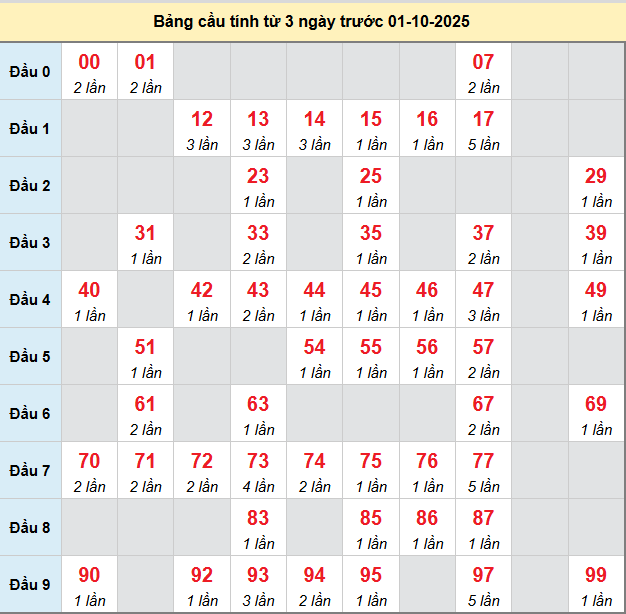 Soi cầu Đồng Nai ngày 01/10/2025 theo bảng bạch thủ 3 ngày