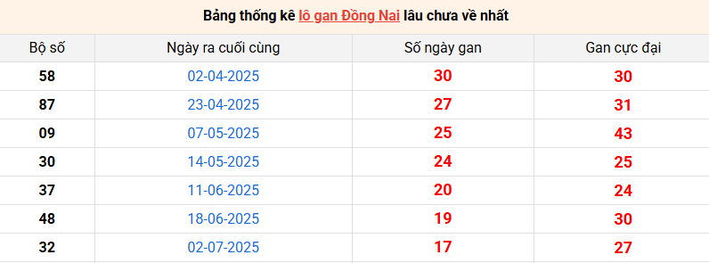 Bảng thống kê lô gan Đồng Nai lâu về nhất 05/11/2025
