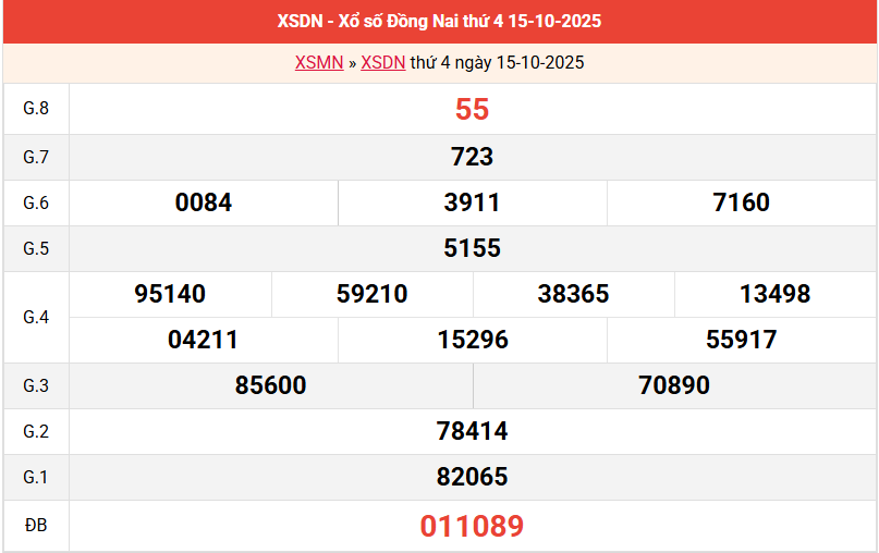 Bảng kết quả Đồng Nai ngày 15/10/2025 tuần trước