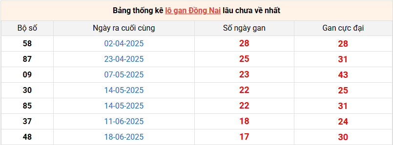 Bảng thống kê lô gan Đồng Nai lâu về nhất 22/10/2025