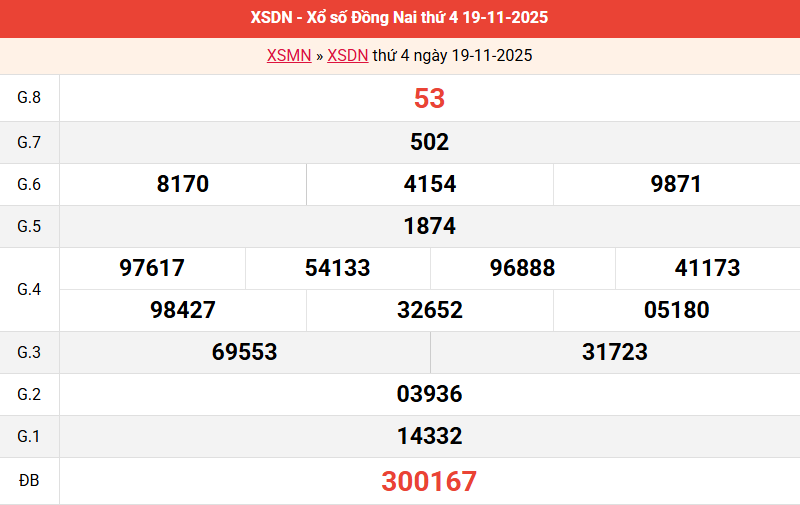 Bảng kết quả Đồng Nai ngày 19/11/2025 tuần trước