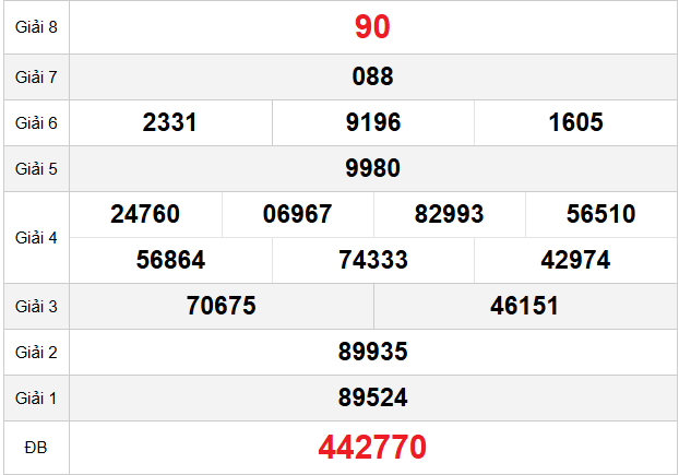 Mời các bạn xem lại bảng kết quả kỳ trước với giải đặc biệt, giải tám, lô tô 2 số để có thể đưa ra nhận định dự đoán GL ngày 01/05/2026 chuẩn xác nhất.