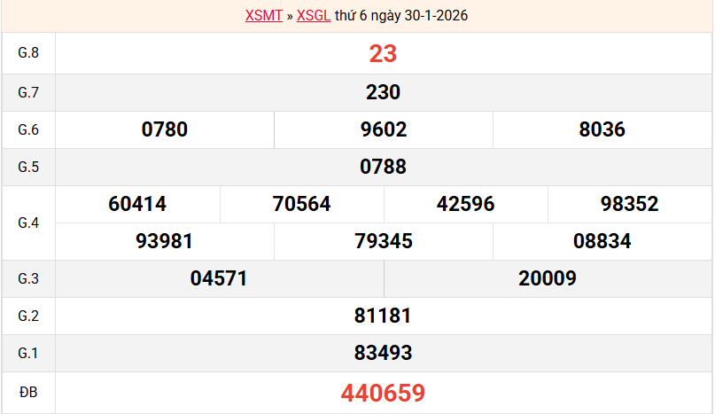 Mời các bạn xem lại bảng kết quả kỳ trước với giải đặc biệt, giải tám, lô tô 2 số để có thể đưa ra nhận định dự đoán GL ngày 06/02/2026 chuẩn xác nhất.
