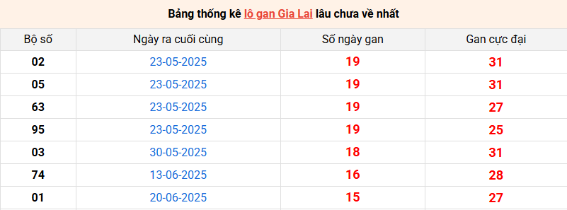Bảng thống kê lô gan Gia Lai lâu về nhất 10/10/2025
