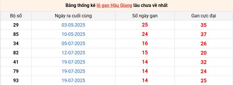 Bảng thống kê lô gan Hậu Giang lâu về nhất 01/11/2025