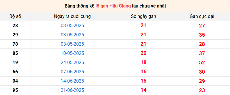 Bảng thống kê lô gan Hậu Giang lâu về nhất 04/10/2025