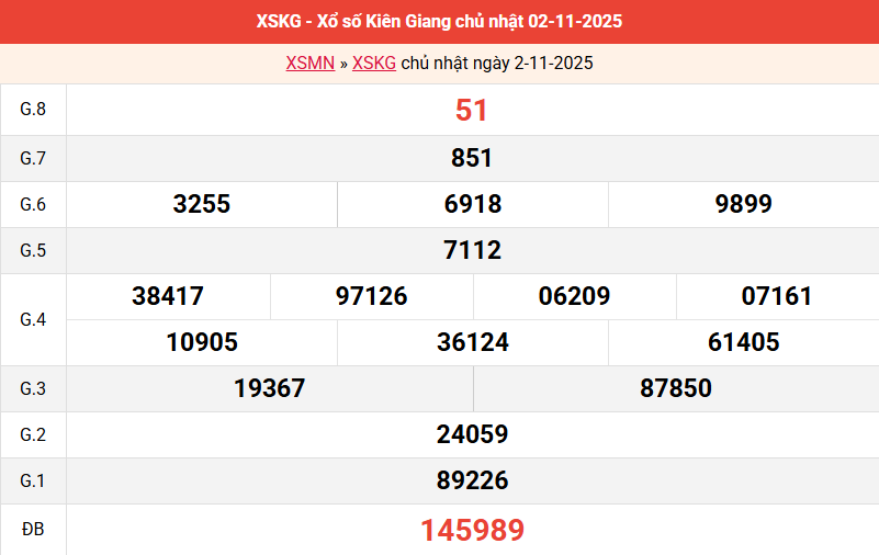Bảng kết quả Kiên Giang ngày 02/11/2025 tuần trước