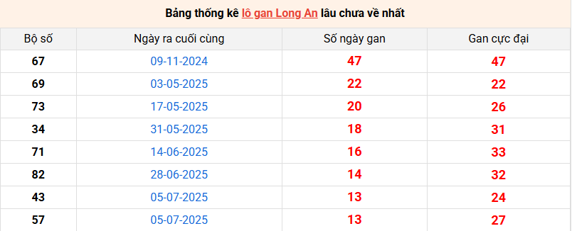 Bảng thống kê lô gan Long An lâu về nhất 11/10/2025