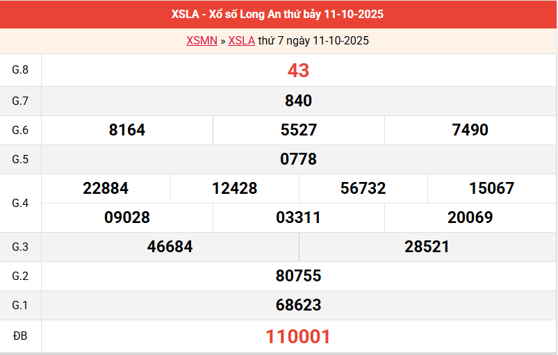 Bảng kết quả Long An 11/10/2025 tuần trước