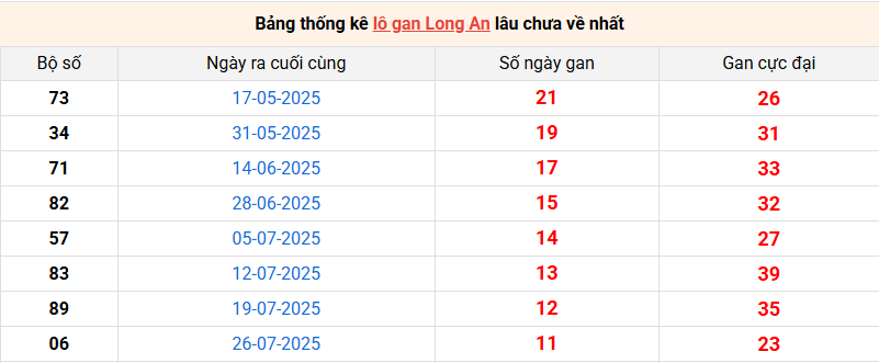 Bảng thống kê lô gan Long An lâu về nhất 18/10/2025