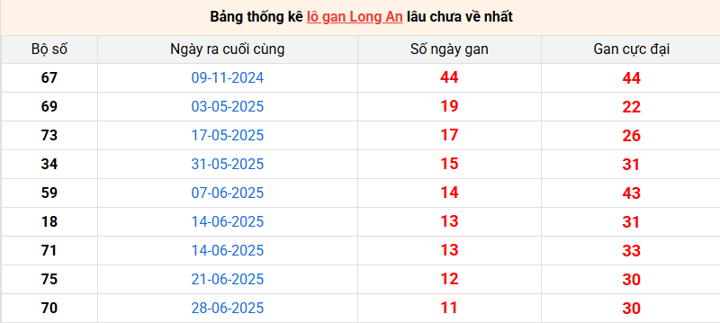 Bảng thống kê lô gan Long An lâu về nhất 20/9/2025