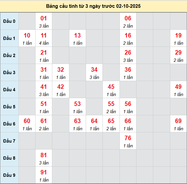 Thống kê soi cầu Miền Nam ngày 02/10 năm 2025 ba đài mở thưởng chiều tối nay chính xác. Những bộ số xuất hiện đều được ghép từ các vị trí trong bảng kết quả từng tỉnh với biên độ thời gian lô rơi liên tục 3 kỳ liên tiếp giúp bạn săn cầu đẹp, bao lô chắc trúng.