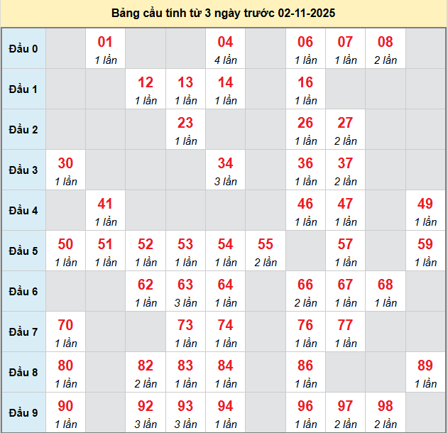 Thống kê cầu hôm nay giúp người chơi có thêm dữ liệu khi phân tích và dự đoán kỳ này được chính xác hơn. Trước khi đến với thống kê, mời các bạn theo dõi lại bảng kết quả kỳ trước để có cái nhìn bao quát hơn về vị trí các con số đã xuất hiện.