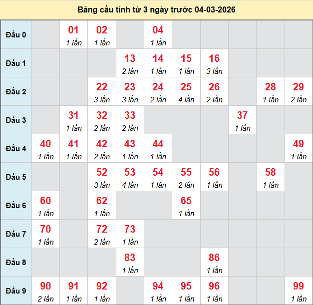 Thống kê cầu hôm nay giúp người chơi có thêm dữ liệu khi phân tích và dự đoán kỳ này được chính xác hơn. Trước khi đến với thống kê, mời các bạn theo dõi lại bảng kết quả kỳ trước để có cái nhìn bao quát hơn về vị trí các con số đã xuất hiện.