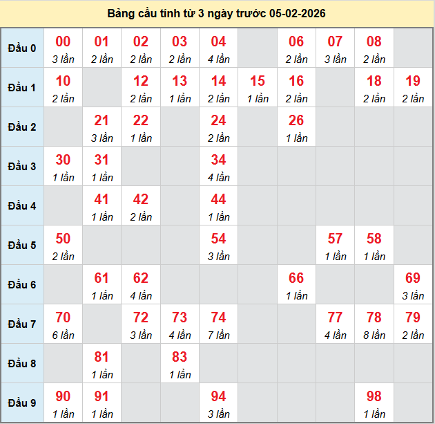 Thống kê cầu hôm nay giúp người chơi có thêm dữ liệu khi phân tích và dự đoán kỳ này được chính xác hơn. Trước khi đến với thống kê, mời các bạn theo dõi lại bảng kết quả kỳ trước để có cái nhìn bao quát hơn về vị trí các con số đã xuất hiện.