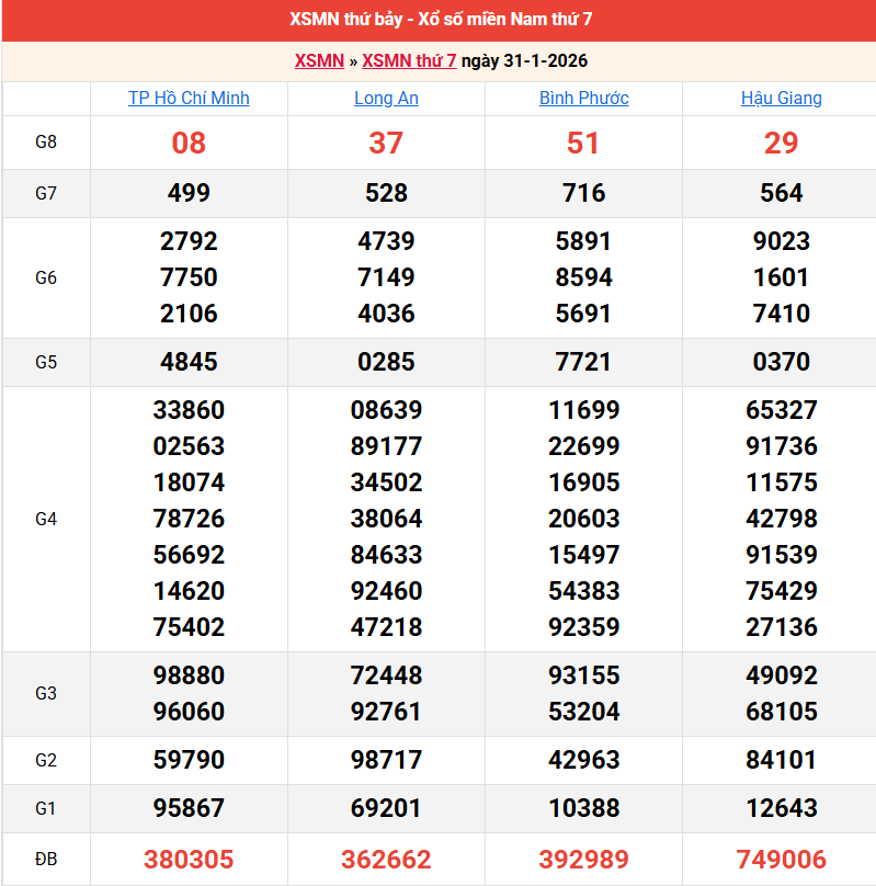 Bảng kết quả kỳ trước 31/01/2026