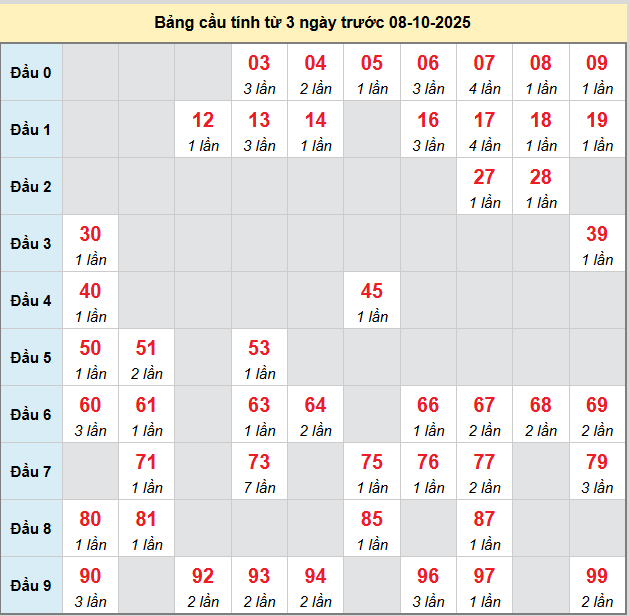 Thống kê cầu hôm nay giúp người chơi có thêm dữ liệu khi phân tích và dự đoán kỳ này được chính xác hơn. Trước khi đến với thống kê, mời các bạn theo dõi lại bảng kết quả kỳ trước để có cái nhìn bao quát hơn về vị trí các con số đã xuất hiện.