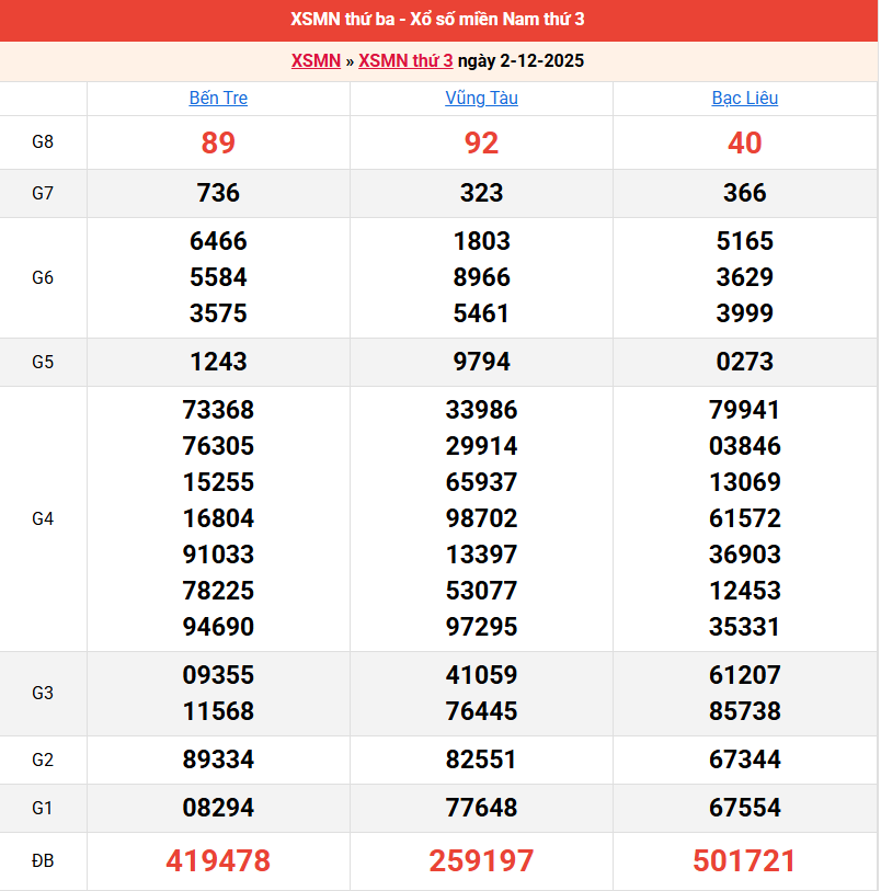 Quay thử kết quả miền Nam ngày 09/12/2025