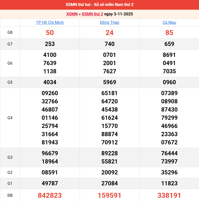 Quay thử kết quả miền Nam ngày 10/11/2025