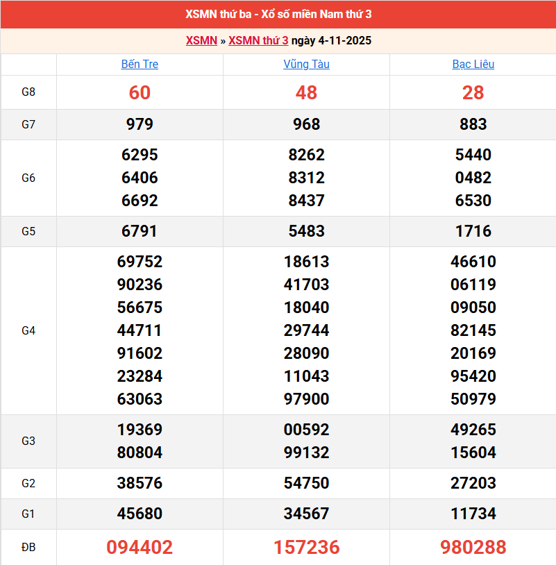 Tham khảo dự đoán miền Nam ngày hôm nay ra con gì - Dự đoán XSMN 11/11/2025 chiều nay 3 đài siêu chuẩn xác từ đội ngũ giàu kinh nghiệm với các mục đầu đuôi đặc biệt, lô tô 2 số, xỉu chủ số đẹp, lô xiên chính xác nhất dưới đây: