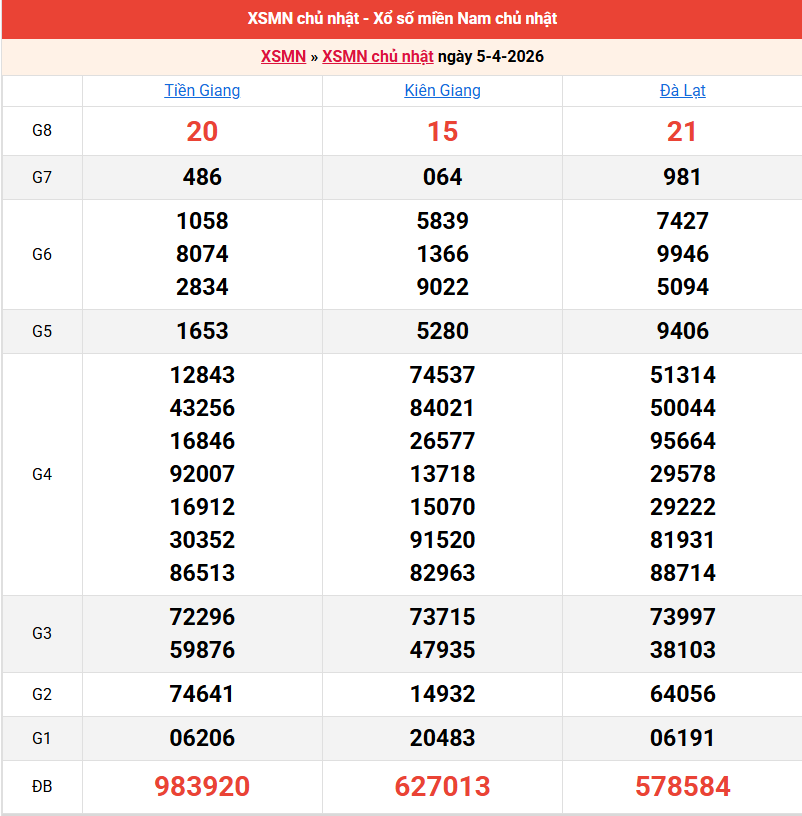 Bảng kết quả kỳ trước 05/04/2026